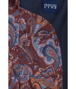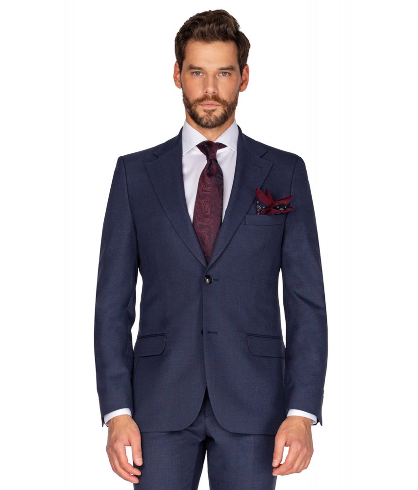 Garnitur granatowy w delikatną bordową kratę