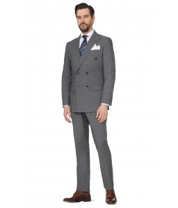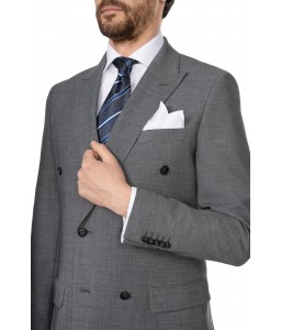 Pánsky dvojradový sivý oblek, štandardné nohavice bez záševkov a úprav