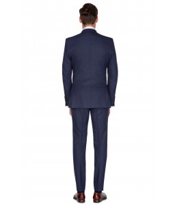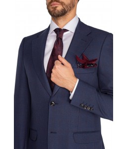 Tmavomodrý oblek s jemným bordovým károvaným vzorom